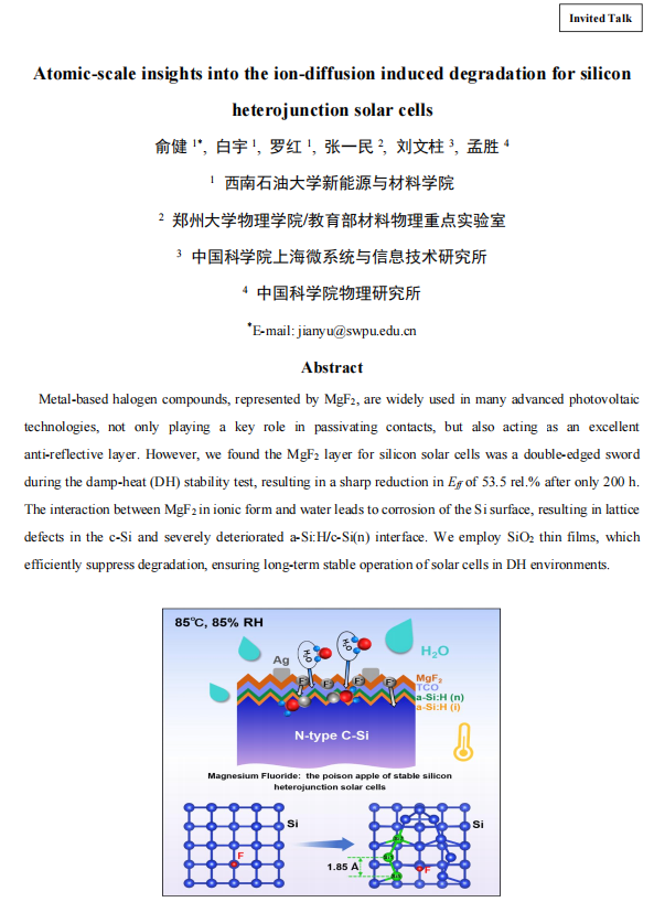 Atomic-scale insights into the ion-diffusion induced degradation for silicon heterojunction solar cells【俞健】