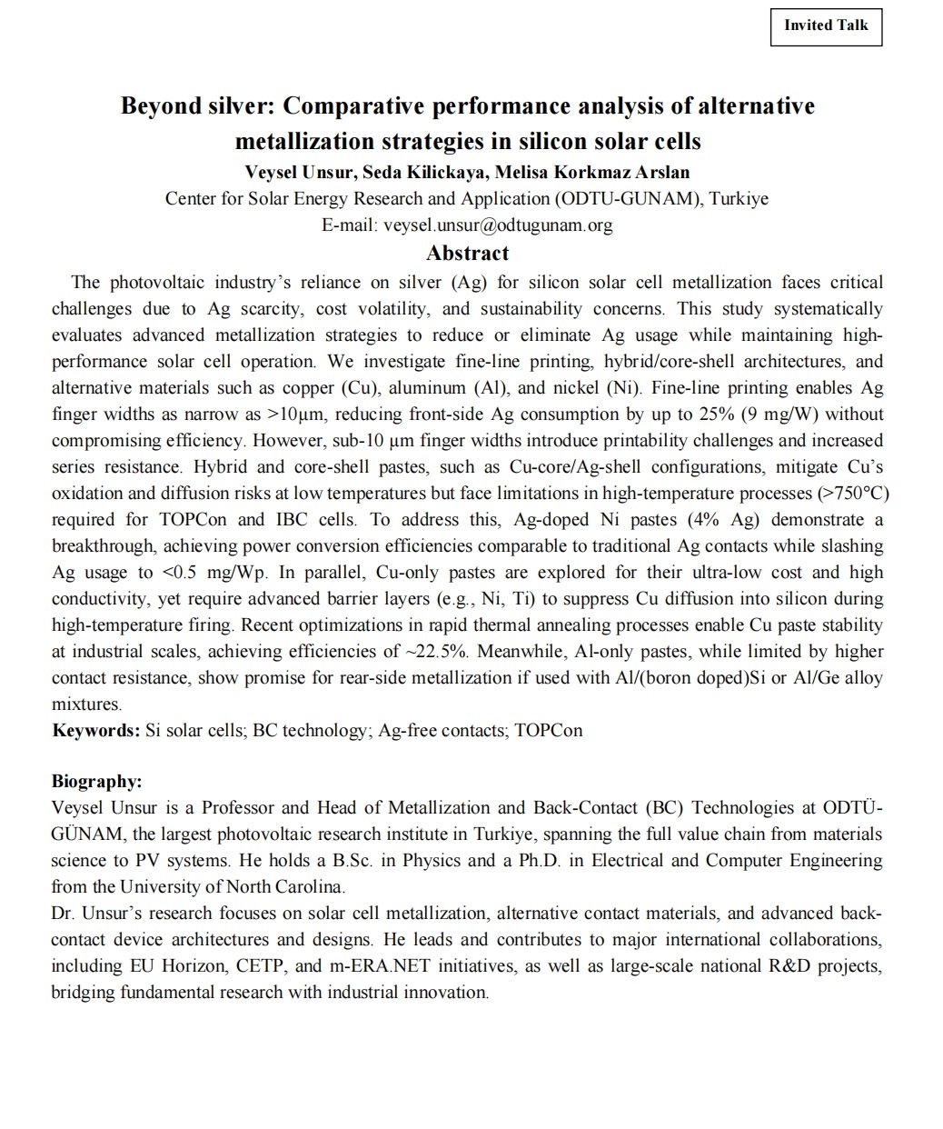 Beyond silver: Comparative performance analysis of alternative metallization strategies in silicon solar cells【Veysel Unsur】