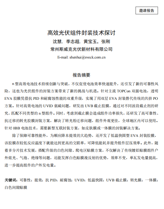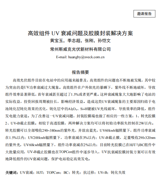 高效组件UV衰减问题及胶膜封装解决方案【黄宝玉】