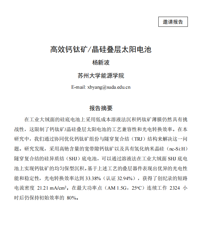 高效钙钛矿/晶硅叠层太阳电池【杨新波】