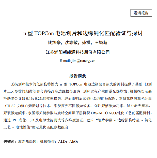 n型TOPCon电池划片和边缘钝化匹配验证与探讨【钱旭豪】