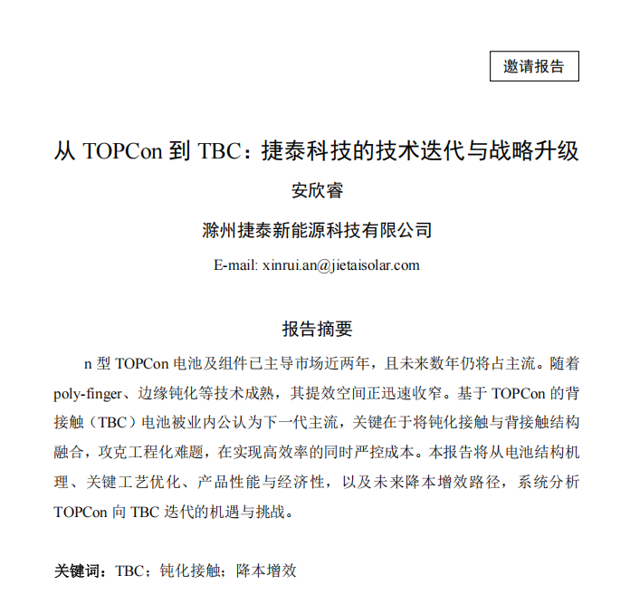 从TOPCon到TBC:捷泰科技的技术迭代与战略升级【安欣睿】