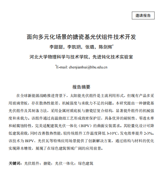 面向多元化场景的搪瓷基光伏组件技术开发【李甜甜】