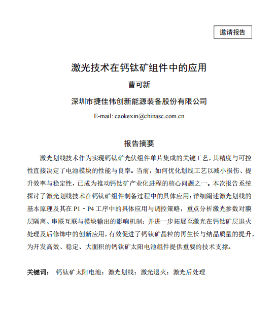大面积钙钛矿制程控制及可靠性检测解决方案 【王 浩】